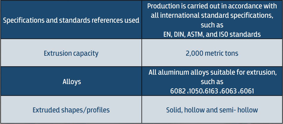 Eurotal Company produces all customers’s requirements of various aluminum alloys in its facilities, thanks to their excellent mechanical properties and high formability. Among these alloys, 6061, 6063, and 6082. These alloys are chosen according to customer requirements and in compliance with international standards.